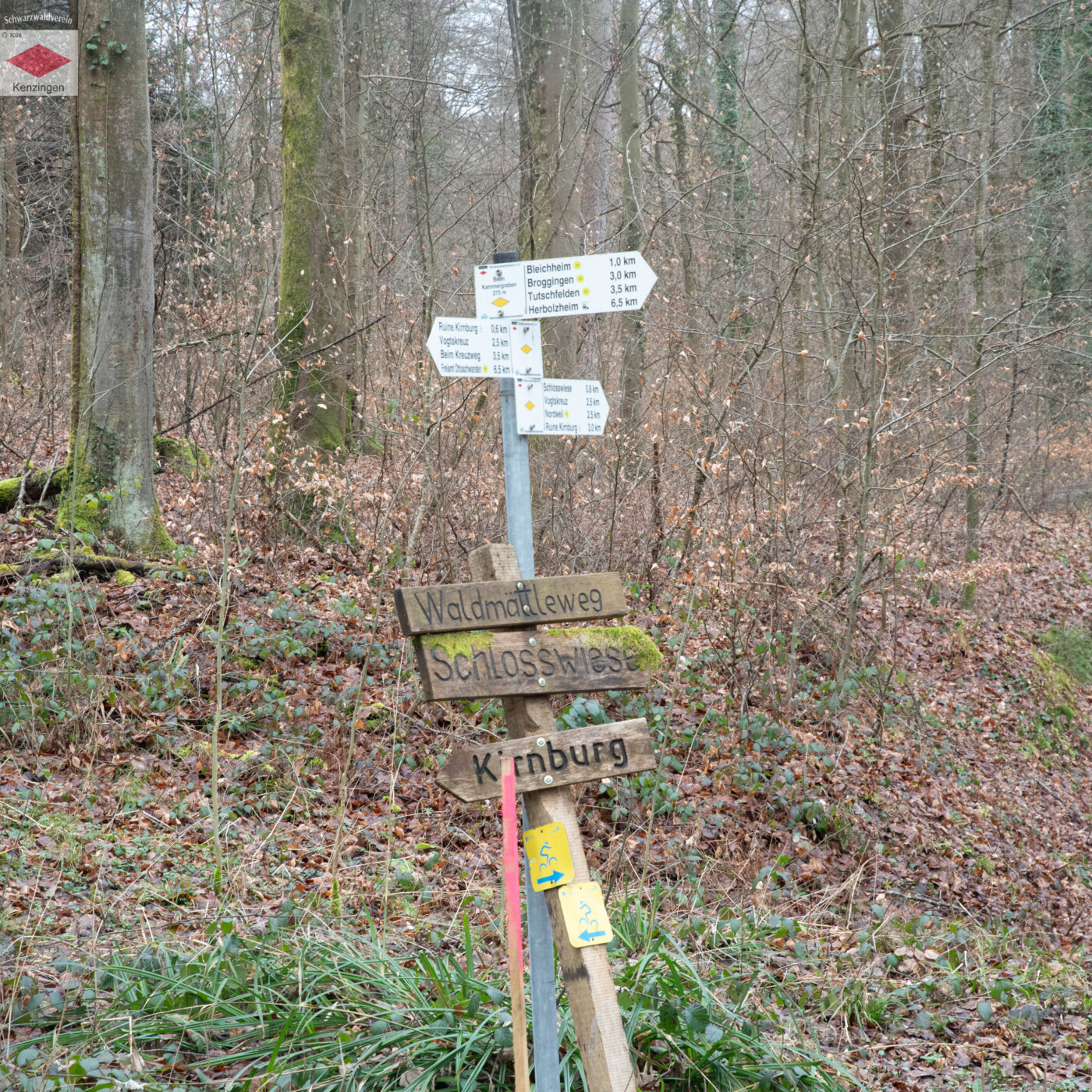 Wir fahren mit dem Linienbus nach Nordweil. Von dort geht es in südöstlicher Richtung hinauf zum Vogtskreuz. Hier teilt sich die Gruppe auf. Die Kurzwanderer gehen unter Leitung von Wanderführer Eberhard Aldinger über kinderwägengeeignete Wege an der Kirnburg vorbei direkt nach Bleichheim. Die Langwanderer folgen einem schmalen Wanderweg hinab zum Kirnbach bis zu Kirnhalde. Ein kurzes Stück werden wir über die Landstraße K5139 gehen müssen. Um nach Bleichheim zu kommen geht es noch einmal ordentlich bergauf. In Bleichheim treffen Kurzwanderer und Langwanderer wieder zusammen.