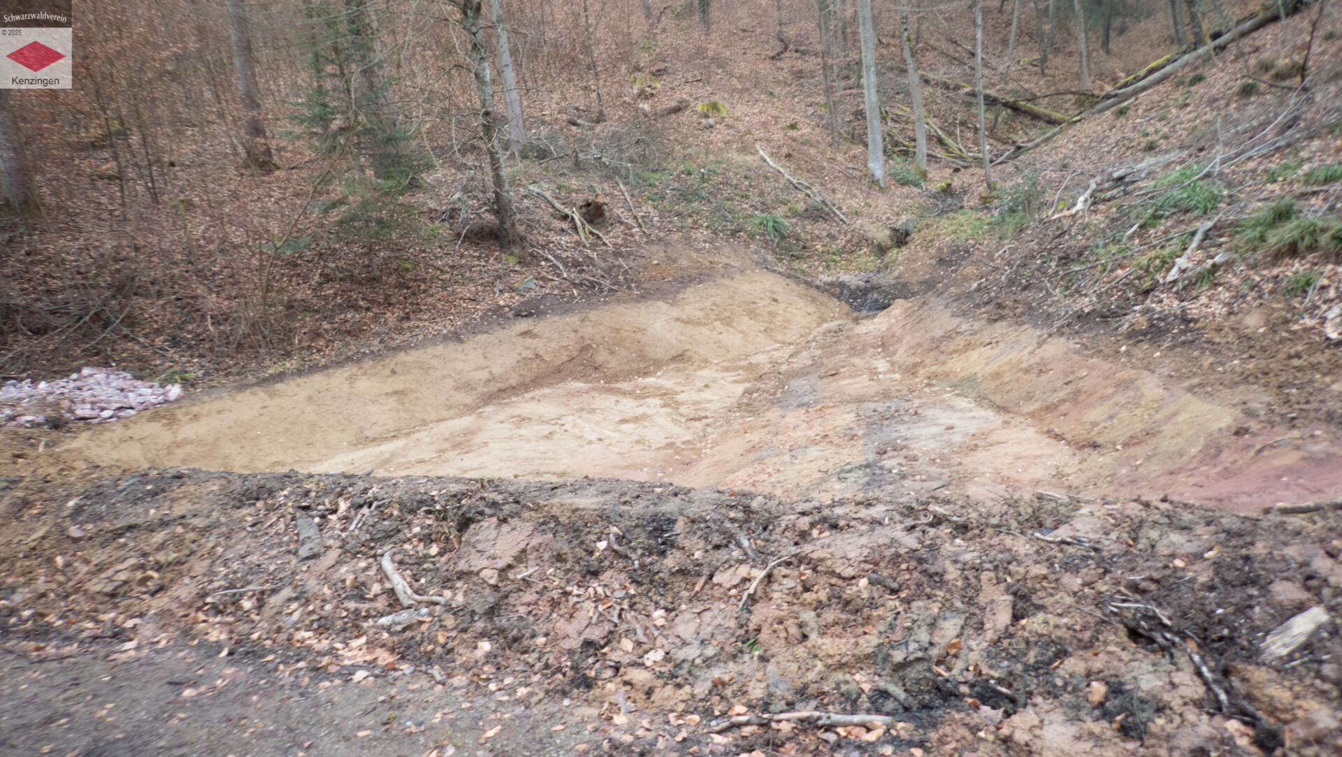 Interessant: Das 3. Bild zeigt die neu angelegte Wasserrückhalteanlage im Wald oberhalb von Bombach.